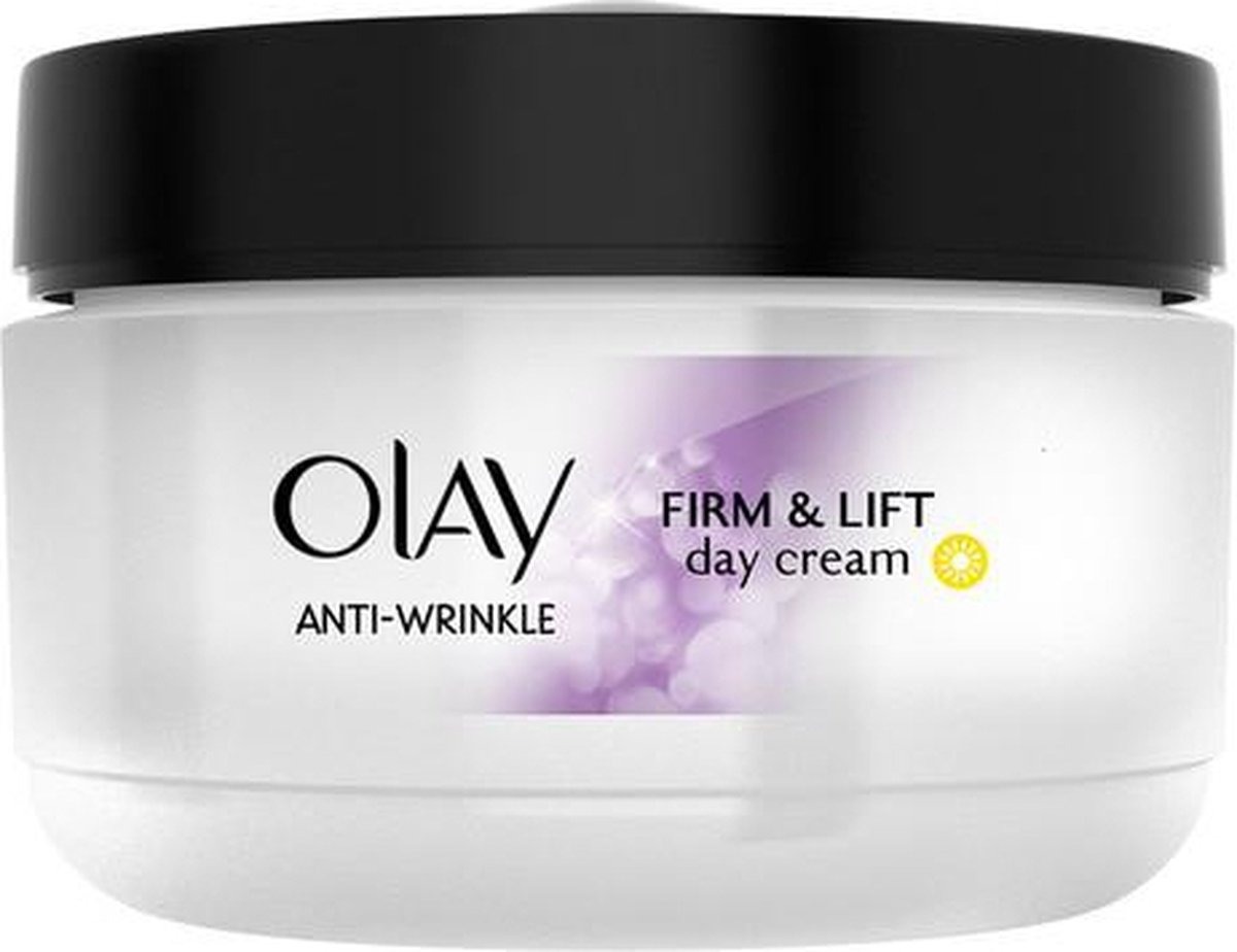 Olay Anti-Wrinkle Firm & Lift Dagcrème SPF15 – 50 ml Olay Anti-Wrinkle Firm & Lift Dagcrème is speciaal ontwikkeld voor de rijpere huid. De rijke formule helpt fijne lijntjes en rimpels zichtbaar te verminderen en zorgt voor een stevigere, gladdere huid die straalt van vitaliteit. De dagcrème bevat SPF15, waardoor je huid dagelijks beschermd wordt tegen schadelijke UVA- en UVB-stralen — een belangrijke stap in het voorkomen van vroegtijdige huidveroudering. Dankzij de lichte, niet-vette textuur trekt de crème snel in en is hij ideaal als basis onder make-up. Voordelen: Vermindert zichtbaar fijne lijntjes en rimpels Verstevigt en hydrateert de huid intensief Beschermt tegen schadelijke zonnestralen met SPF15 Bevat vitamine B3 (Niacinamide) voor een gezonde, egale huid Lichte, niet-vette formule – perfect voor dagelijks gebruik Gebruik:Breng ’s ochtends aan op een gereinigd gezicht en hals. Masseer zachtjes in tot de crème volledig is opgenomen. Geschikt voor: Rijpe huid Droge tot normale huidtypes Inhoud: 50 mlMerk: Olay.
